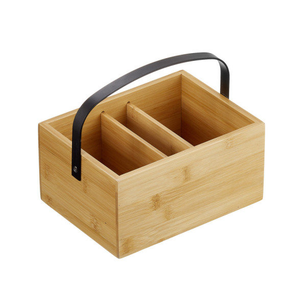 Cassetta in bamboo ideale per mantenere in ordine condimenti, posate e accessori per buffet o tavoli ristoranti. Dimensioni: 20x15x10cm