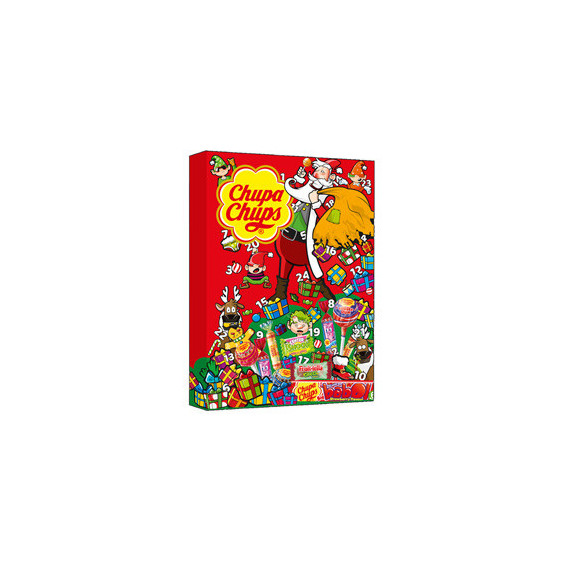 Calendario dell’Avvento Chupa Chups contiene: Big Babol, Strawberry Flavour Stick, Center Shock (flavour cola – mela – fragola – arancia rossa), Caramelle Look o Look, Fruit-tella Ciucci Frizz, Chupa Chups, Big Babol Lollipop, Chupa Chups classic Lollipop e Melody Pops.