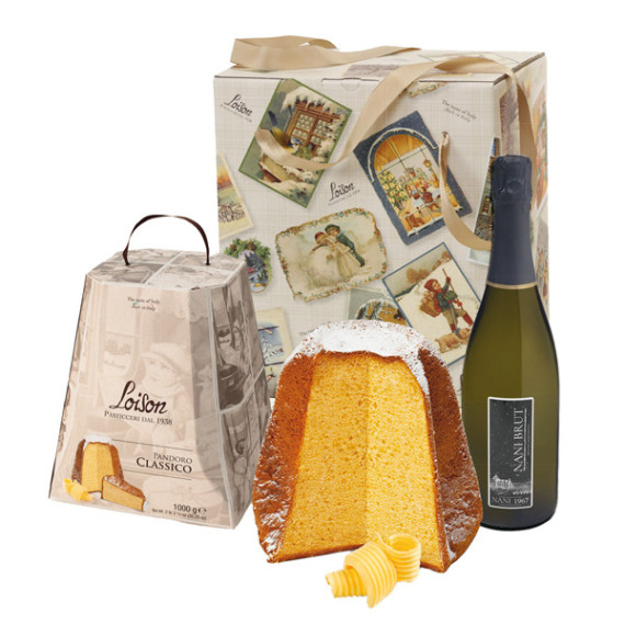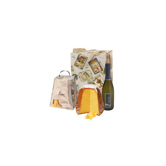 Elegante shopper verde con stampa in pet riciclato. Contiene: Pandoro Classico in astuccio linea Tuttigiorni, 1kg Bottiglia di Spumante Extra Dry Cuvée Royale, Montresor, 75cl