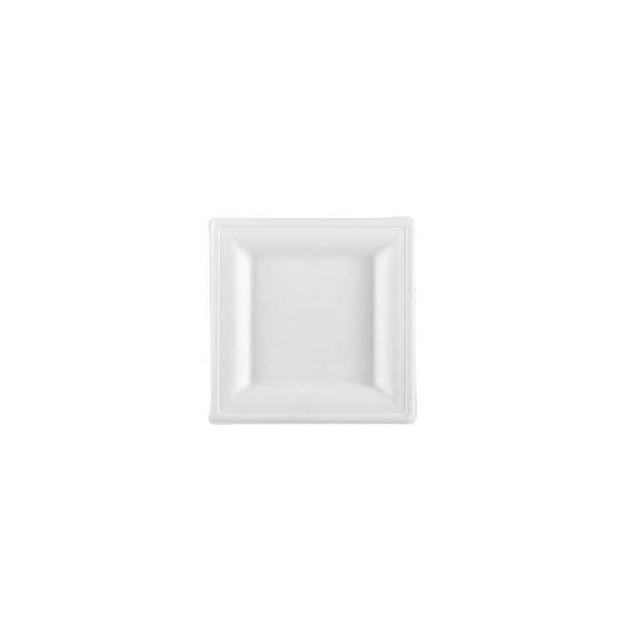Piatto piano monouso - quadrato - 16 x 16 cm - canna da zucchero - bianco - Signor Bio - conf. 50 pezzi
