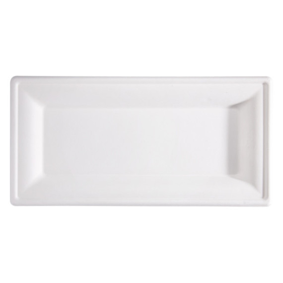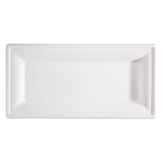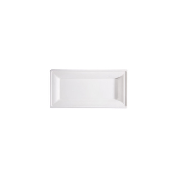Piatto piano monouso - rettangolare - 26 x 13 cm - canna da zucchero - bianco - Signor Bio - conf. 50 pezzi