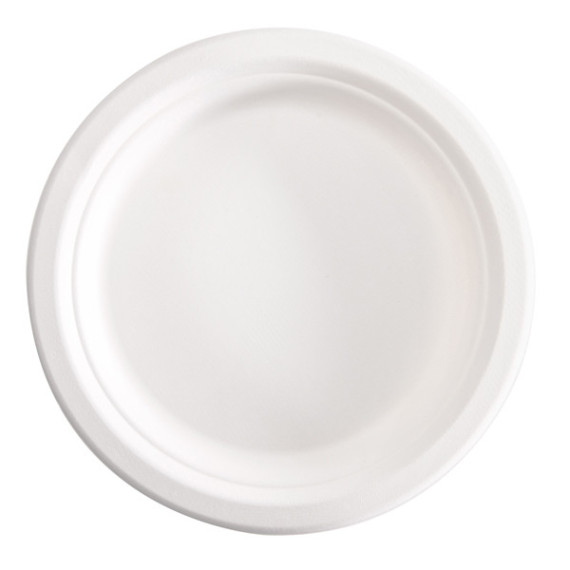 Piatto piano monouso - rotondo - diametro 18 cm - canna da zucchero - bianco - Signor Bio - conf. 125 pezzi