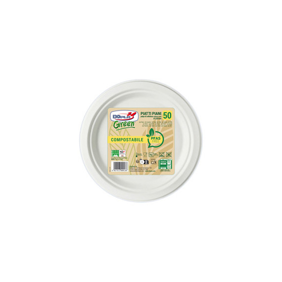 Piatto piano monouso - rotondo - diametro 22 cm - cellulosa - bianco - Dopla Green - conf. 50 pezzi