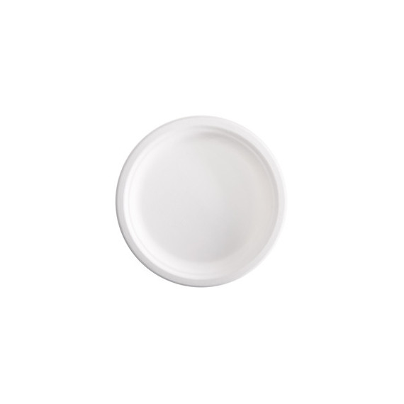 Piatto piano monouso - rotondo - diametro 23 cm - canna da zucchero - bianco - Signor Bio - conf. 125 pezzi