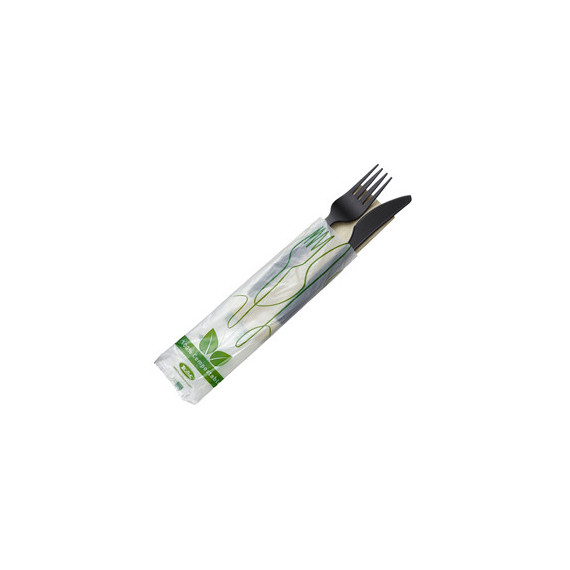 Bis coltello e forchetta - CPLA - con tovagliolo - nero - Leone - conf. 250 pezzi