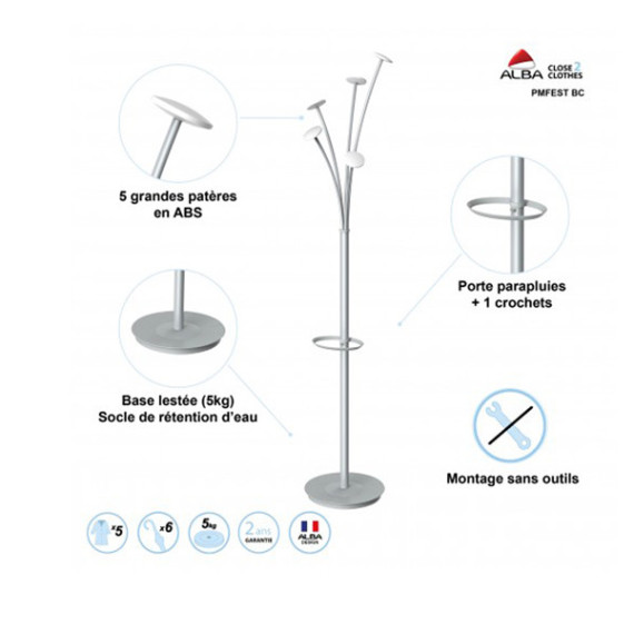 Appendiabiti - con portaombrelli - 5 posti - 187 cm - bianco - Alba