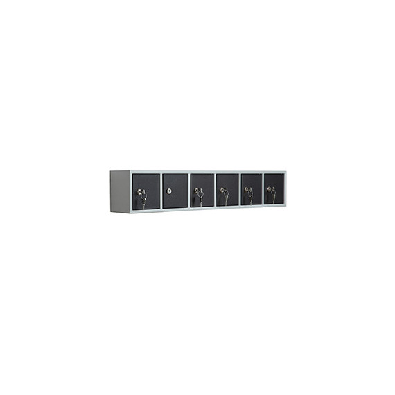 Casellario componibile di cassette di sicurezza in lamiera verniciata a polvere epossidica. Serratura a chiave. Colore corpo: grigio chiaro. Colore anta: antracite. Ideale per scuole, spogliatoi e uffici. Dimensioni totali configurazione a 6 porte: 90x15x200cm - dimensione porte 15x15cm.