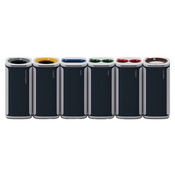Il design elegante e moderno permette la sua collocazione in ogni tipo di ambiente. Ideale per creare isole ecologiche in ufficio e negli spazi pubblici. Due aree circolari, presenti ai lati della scocca esterna, contengono dei magneti per far agganciare facilmente i vari moduli. Contenitori stabili costruiti in ABS e PP riciclabilial 100% riciclabili. Facile e veloce il sistema per lo svuotamento del sacco con apertura a basculante del coperchio. Capacità cestino 60 lt. Dimensioni: (LxPxH) 34x34,5x70,5.