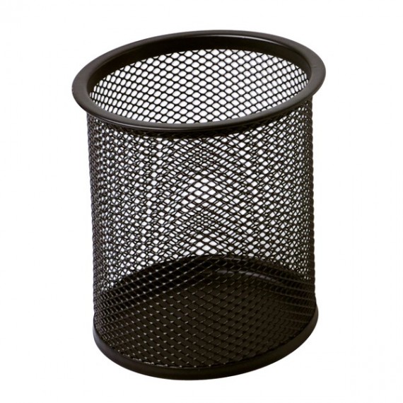 Bicchiere portapenne cilindrico in rete metallica. Formato 8x10cm.