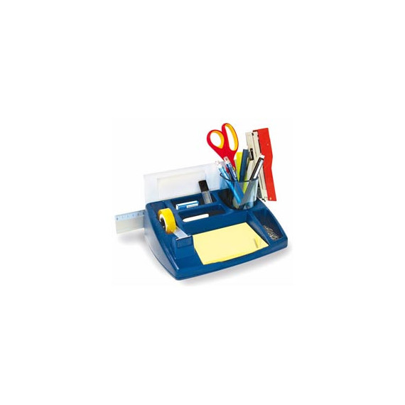 Desk Organizer Oliver struttura in polistirolo antiurto, atossico. Il portapenne può essere estratto dalla sua sede ricavando così un ulteriore vano oggetti. Porta nastro-adesivo per misura standard 19x33 mm.