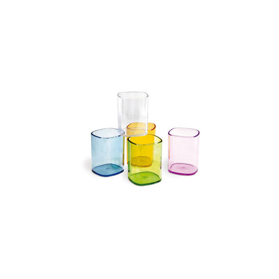 Portapenne trasparente colorato di spessore elevato e ottima stabilità. Colore trasparente. Ideale per contenere penne, matite e altri strumenti di scrittura. Materiale antiurto. Formato 65x65x95mm.