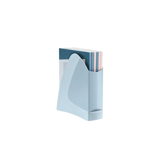 Portariviste dalle linee dinamiche, pratico, funzionale ed elegante per l’archiviazione dei tuoi documenti. I lati solidi e la soglia frontale molto bassa facilitano l’inserimento e l’estrazione dei fogli. Una maniglia a linguetta posta sul retro rende semplice afferrare il portariviste quando è riposto. Adatto a documenti fino al formato A4, offre una grande capacità grazie alla larghezza di 7,5 cm. Le dimensioni sono 257 x 75 x 260 mm. Realizzato in plastica PS resistente, composta al 94% da materiale riciclato e completamente riciclabile. Disponibile nei colori verde salvia, azzurro chiaro, pesca, giallo chiaro e rosso.