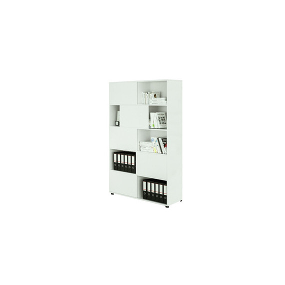 Libreria alta Tetris a 5 ripiani ante scorrevoli - 120x35x191 cm - Bianco/bianco
