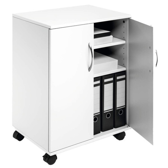 Mobiletto Multifunzione 74/53 - con ante alte e ruote - 4 ripiani - 52,8 x 40 x 73,7 cm - bianco - Durable
