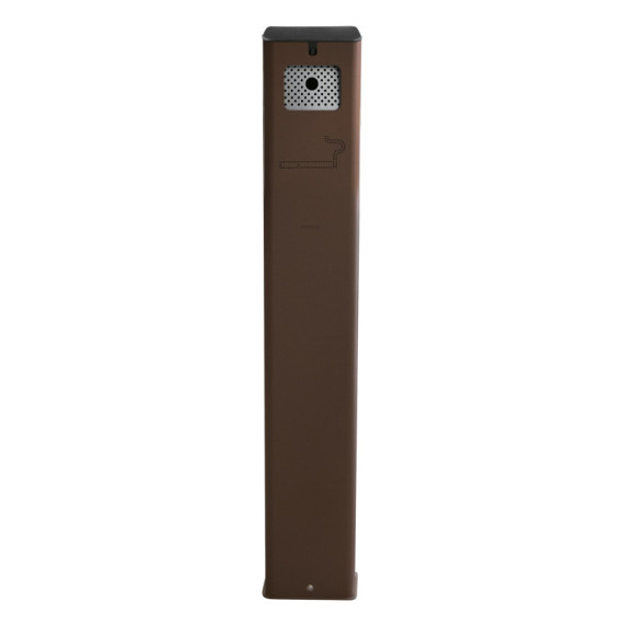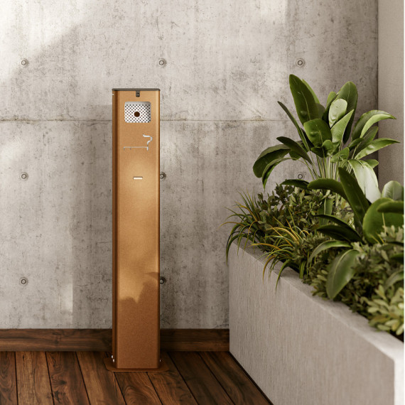 Posacenere da terra in acciaio verniciato con predisposizione per fissaggio al suolo. Capacità 2 litri. Chiusura superiore di sicurezza tramite serratura. Dimensioni: 17,5x10,5x106 cm