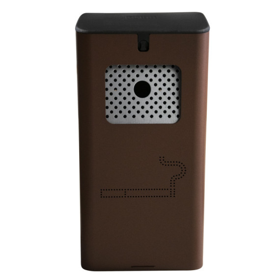Posacenere in acciaio verniciato. Capacità 2 litri. Chiusura superiore di sicurezza tramite serratura. Dimensioni: 17,5x10,5x34 cm