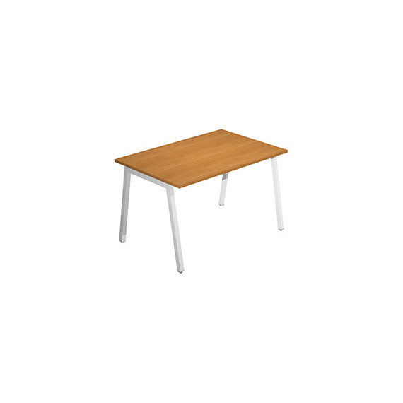 Scrivania lineare Easy - struttura bianca - gambe inclinate - 120 x 80 cm - noce chiaro