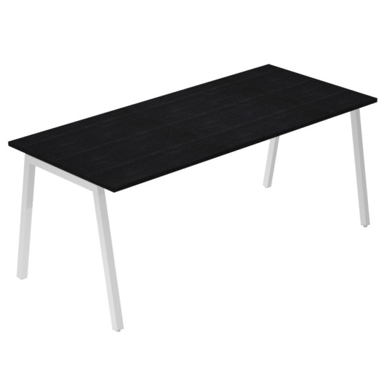 Scrivania lineare Easy - struttura bianca - gambe inclinate - 160 x 80 cm - nero venato