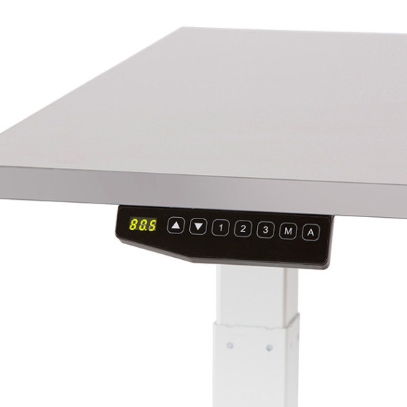 Scrivanie elettriche regolabili in altezza, che permettono all'utente di cambiare posizione per lavorare sia da seduto che in piedi. Sono la soluzione ideale per mantenere una corretta postura. Sistema motorizzato conforme alla norma EN61000-3- 3: 2013, progettato per rispondere alle esigenze lavorative. Il piano della scrivania è realizzato in melaminico da 25mm di spessore con bordo in PVC da 1mm. Struttura in tubo e lamiera d'acciaio, verniciata con finitura epossidica RAL 9003, colonna regolabile in altezza a due livelli ( altezza minima 715mm . massima 1160mm) tramite dispositivo elettrico. Piedini regolabili fino a 2 cm. Sistema di sollevamento con due colonne invertite. Controller elettrico con 4 memorie preimpostate. Altezza regolabile tramite un singolo motore. Cavo di alimentazione da 1,5m Gancio inferiore per appendere borse o altri oggetti. Portata massima 80kg.