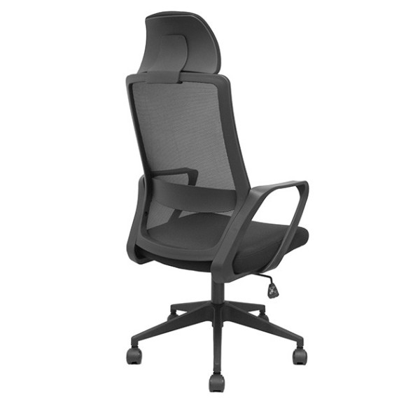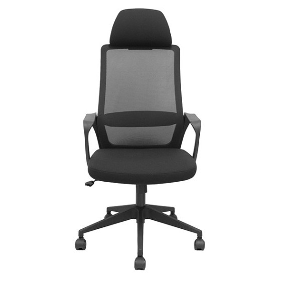 Poltrona direzionale con sedile alto e poggiatesta regolabile. Regolabile in altezza con meccanisco basculante. Braccioli fissi. Su pporta un peso massimo di 120 kg. Altezza: 118-130 cm. Altezza sedile: 45-56 cm. Prof. Sedile: 50cm.