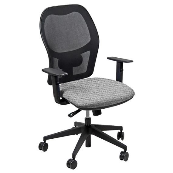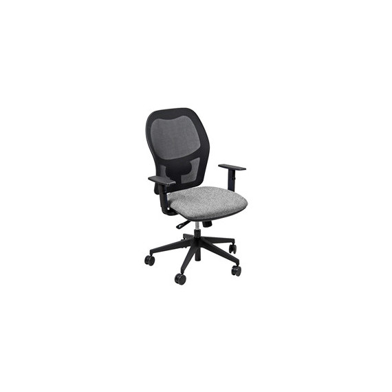 Seduta operativa girevole con elevazione a gas, meccanismo syncro, 4 blocchi anti shock e meccanismo a contatto permanente. Schienale con supporto lombare regolabile. Completa di braccioli regolabili. Rivestimento in tessuto ECO-Eco 100% polipropilene. Alt.tot: 102-113cm. Prof.tot: 68cm. Alt.schienale: 60cm. Largh.schienale: 48cm. Largh.sedile: 48cm. Prof.sedile: 46cm. Alt.sedile: 42-54cm.