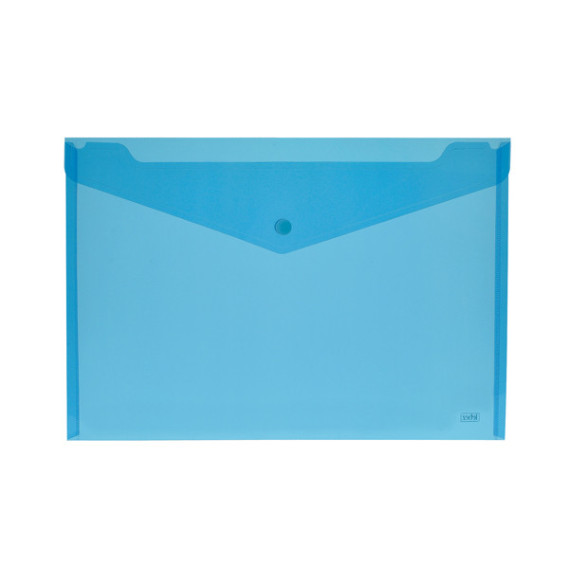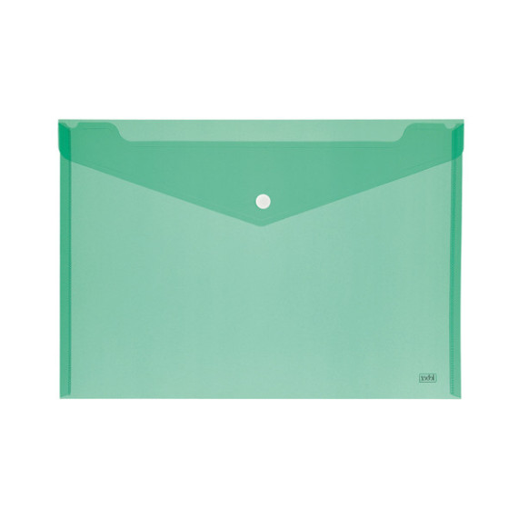 Buste in polipropilene con chiusura con bottone. Confezione assortita in 4 colori. Formato utile: 24x18,5cm.