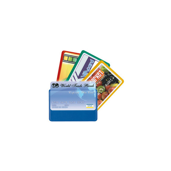 Espositore con porta carte di credito, schede telefoniche, tesserini di riconoscimento, nuovepatenti,viacard,tessere ACI, etc. In PVC morbido colorato.