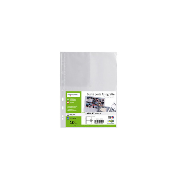 Buste forate Atla FT porta foto e cartoline - 4 spazi 15 x 21 cm - trasparente - Sei Rota - conf. 10 pezzi