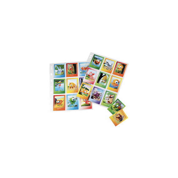 Buste porta figurine con foratura universale in PP liscio. Dotate di 9 spazi per la raccolta di figurine. Formato esterno 210x297mm. Contiene 9 tasche da 60x90mm.
