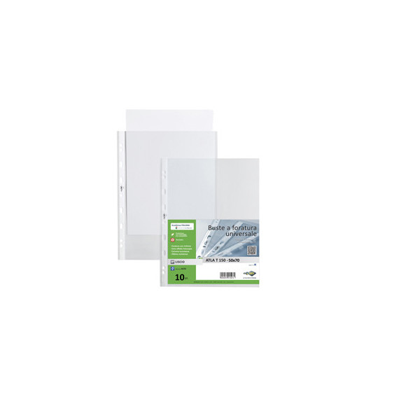 Buste forate in PP trasparnte liscio con medio spessore. Foratura universale rinforzata sul lato lungo (verticale). Ideali per archiviare qualsiasi tipo di documento. Formato 50x70cm.