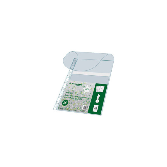 Busta STARLINE in PVC liscio ad alta capacità di contenuto. Foratura universale rinforzata, soffietti laterali per una capacità fino a 25mm di spessore (circa 250fg). Dotata di patella per la chiusura. Formato utile 21x30cm.Caratteristiche di questo articolo:Codice: STL7210Modello: Busta forata ad alta capacità con soffiettoDescrizione: 21x30cm – liscioFormato utile: 21x30cmCapacità: 25mm (circa 250fg)Finitura: lisciaForatura: universaleConfezione: 10pz