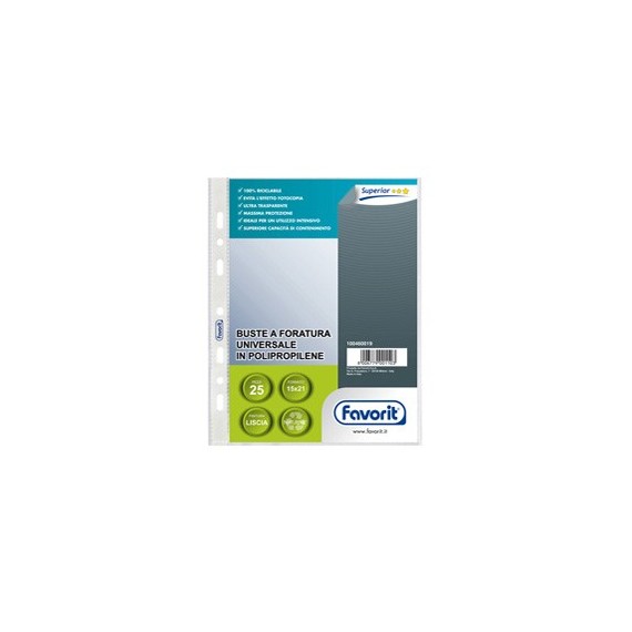Buste forate Special PP - Superior - liscio - 15 x 21 cm - trasparente - Favorit - conf. 25 pezzi