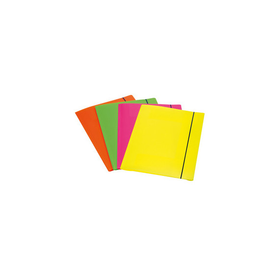 Cartelline Fluo Shocking File realizzate in PPL da 0,6mm in 4 vivaci colori fluo. Riciclabili, indistruttibili e resistenti all'umidità. Cartellina 3L dotata di 3 lembi a cordonatura multipla e chiusura con elastico. Formato 25,5x35,5cm. Dorso 3cm.