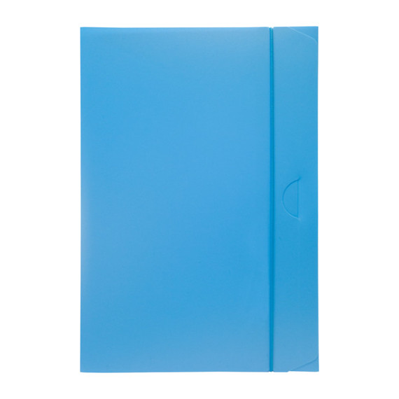 Porta Progetto azzurro realizzate in PP da 0,6mm, indeformabili. Doppio incastro laterale e chiusura con elastico. Formato utile:23,5x34,5cm. Dorso 3cm.