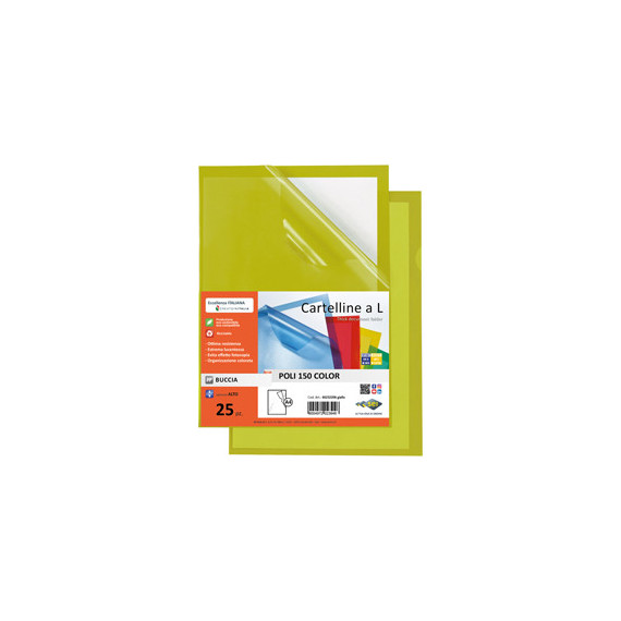 Cartellina a L - Poli 150 Color - PP - 21 x 29,7 cm - trasparente giallo - buccia - Sei Rota - conf. 25 pezzi
