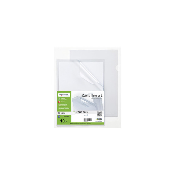 Cartellina a L - Poli T Plus - PP - 30 x 42 cm - trasparente liscio - Sei rota - conf.10 pezzi