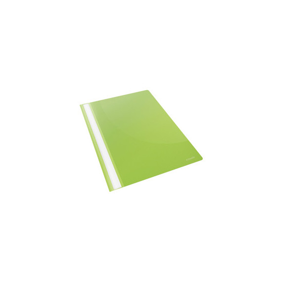 Cartelline Report File realizzata in PPL verde vivida con due linguelle per l'archiviazione di documenti forati. Etichetta longitudinale estraibile. Formato utile: 21x29,7cm.