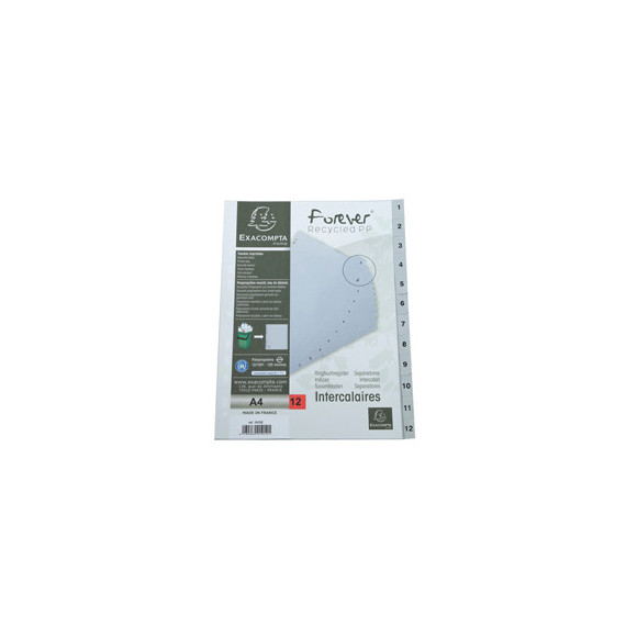 Intercalare numerico - PP riciclato - A4 - 12 tasti - grigio - Exacompta