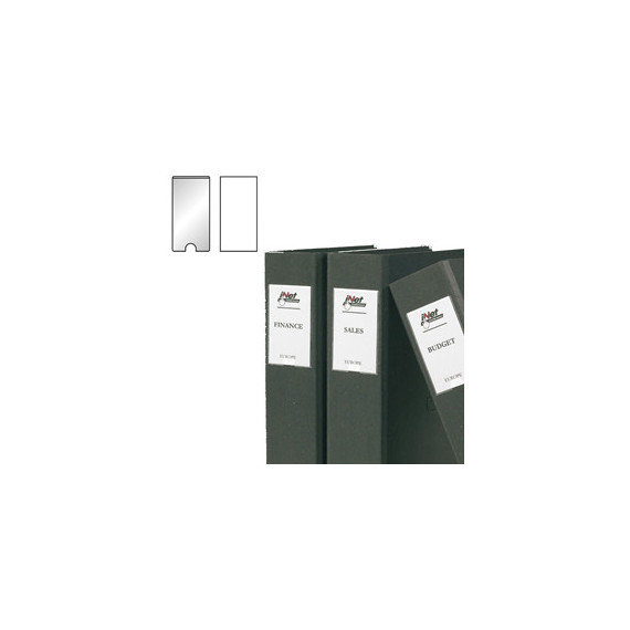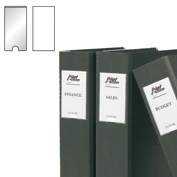 Portaetichette in polipropilene autoadesivi, permanenti e trasparenti, dotati di etichette di carta scrivibili, stampabili e intercambiabili. Comoda apertura a semicerchio che permette di inserire e rimuovere agevolmente gli inserti. Ideali per contrassegnare in modo semplice e rapido raccoglitori, registratori, archivi, ecc... Formato 22x102 mm.