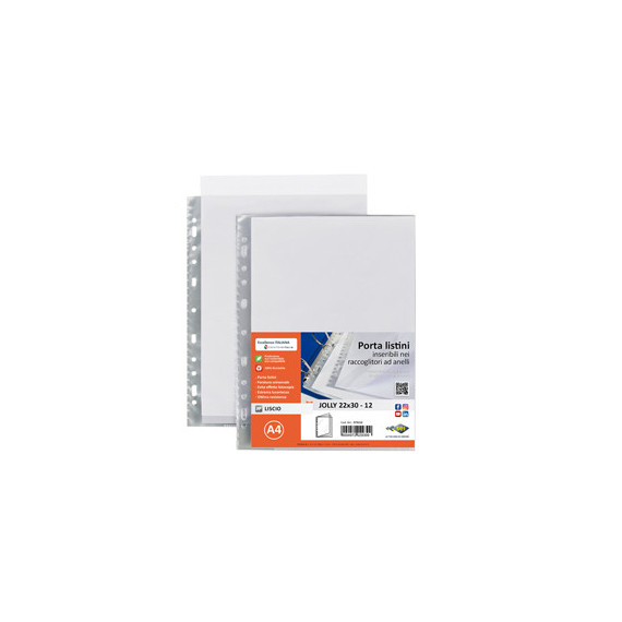 Portalistini Jolly - 12 buste forate - 22 x 30 cm - PP trasparnte - liscio - Sei rota
