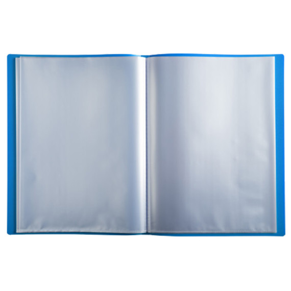 Portalistini Opak in polipropilene con 40 buste leggermente goffrate. Copertina colore azzurro. Formato 24x32cm.Copertina flessibile in polipropilene opaco, con effetto strutturato, resistente a macchie e graffi. L'oppacità della copertina garantisce la privacy del contenuto. 40 Buste interne finitura leggermente goffrata antiriflesso. Apertura sul lato superiore per inserire ed estrare più facilmente il contenuto. Capacità d'archiviazione fino a 80 fogli formato A4.Idoneo per creare listini personalizzati, menù e presentazioni per la scuola o l'ufficio ed evitare che il contenuto si rovina.