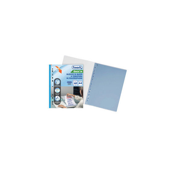 Quick IN blocco buste forate - liscio - A4 - trasparente - Favorit - conf. 60 buste