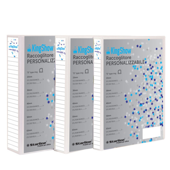 Raccoglitore personalizzabile KingShow - 22 x 30 cm - 4 anelli a D 30 mm - dorso 4 cm - bianco - Starline