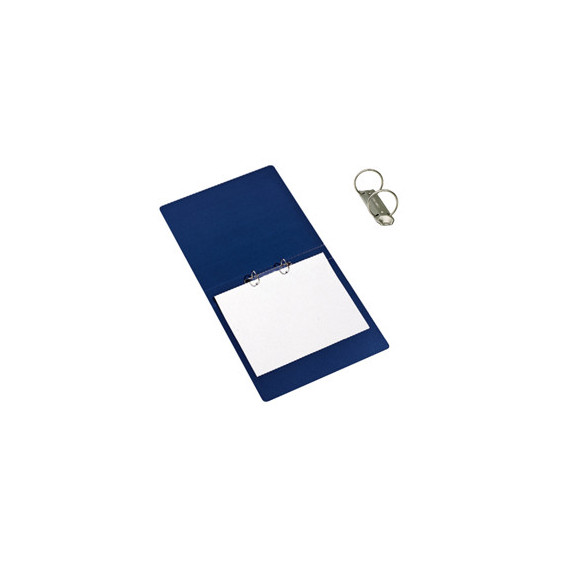 Cartella in presspan bilucido (spessore 0,8 mm) con meccanismo a 2 anelli (diametro 25 mm). Formato 25x33 cm. Colore blu.