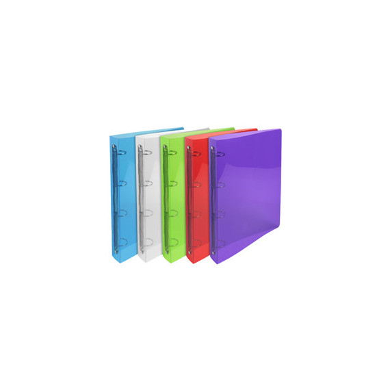 Copertina in polipropilene cristallo rigato 700 micron in 5 colori assortiti.Dorso 40mm, meccanismo a 4 anelli tondi diametro 30mm.Materiale con una bella rigidità, resistente e durevole. Idoneo per archiviare fogli sciolti, buste forate, divisori.Capacità d'archiviazione fino a 275 fogli di carta 80 gr.Dimensioni 26,8x32 per A4.