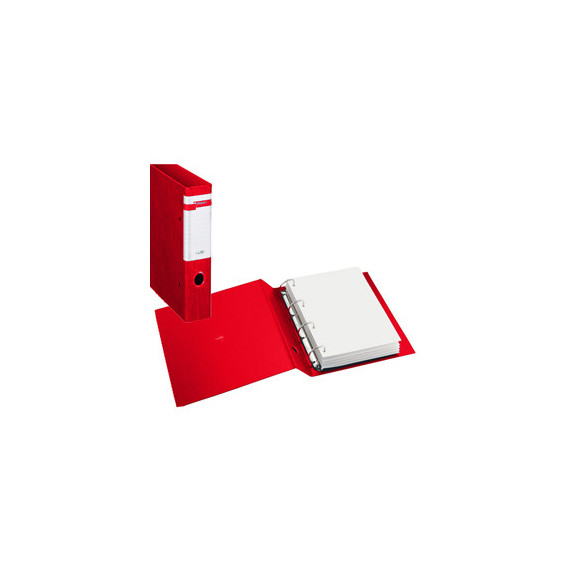 Raccoglitore in Colpan® (cartone rivestito in PVC) con meccanismo a 4 anelli (a D). Dotato di finestrino avvolgente con etichetta e di occhiello per l'estrazione in tinta. Ideale per archiviare documenti di frequente consultazione. Formato esterno: 260x310 mm. Formato contenuto: 220x300 mm (A4). Dorso: 35 mm. Diametro anelli: 25 mm. Colore rosso.Custodia adatta a catalogo: codice 25585.