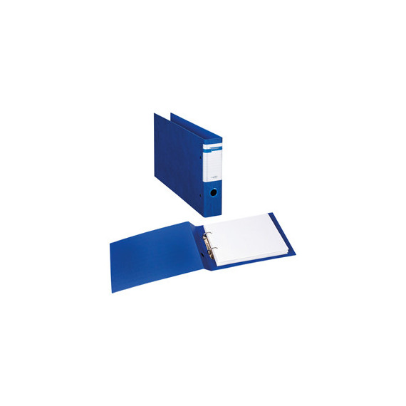 Raccoglitore ad album in Colpan® (cartone rivestito in PVC) con meccanismo a 2 anelli (a D). Dotato di finestrino avvolgente con etichetta e di occhiello per l'estrazione in tinta. Formato contenuto: 300x220 mm (A4 album). Diametro anelli: 40 mm. Colore blu.