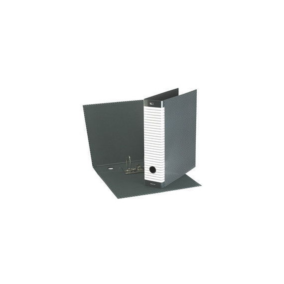 Registratore con ampio dorso riscrivibile per la massima personalizzazione. Robusta struttura in cartone (spessore 2 mm) rivestita in carta stampata e plastificata. Dotato di foro per l'estrazione e meccanismo a leva con 2 anelli. Resistente custodia da 0.9 mm in fibrone con bordi metallici rinforzati.Formato Protocollo (LxH) 23x33 cm. Dorso 8 cm. Colore grigio. Dimensioni 85x350x295 mm.Per cancellare le scritte pulire il dorso con una gomma per matita oppure con un batuffolo imbevuto di alcol denaturato o acetone.