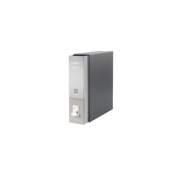 Registratore Dox® 1 dotato di linguella per l'estrazione a scomparsa 3 volte più resistente, caratterizzata da un design con presa più ergonomica, più agevole e arrotondata (l'area rientrante suggerisce il gesto per estrarre correttamente).Struttura in cartone rivestito con carta goffrata antimpronta e rifinito con paralati metallici alla base della plancia. Custodia in fibrone rivestito con carta nera goffrata trattata antimpronta, interno nero e parabordi verniciati. Meccanismo a leva in acciaio nichelato con pressino. Dorso in materiale plastico colorato e portaetichette trasparente con etichetta reversibile.Ogni dox possiede al suo interno un volantino con il codice QR da applicare sull'etichetta e 3 semplici indicazioni per scaricare la app dedicata su App Store e Google Play. Dox infatti si trasforma in registratore intelligente grazie a mydox app, la soluzione facile e immediata per archiviare e reperire documenti (tutte le informazioni sono disponibili sul sito www.myesseltedox.com).Formato commerciale (LxH) 23x29,7 cm. Dorso 8 cm. Colore grigio chiaro. Dimensioni 85x315x288 mm.