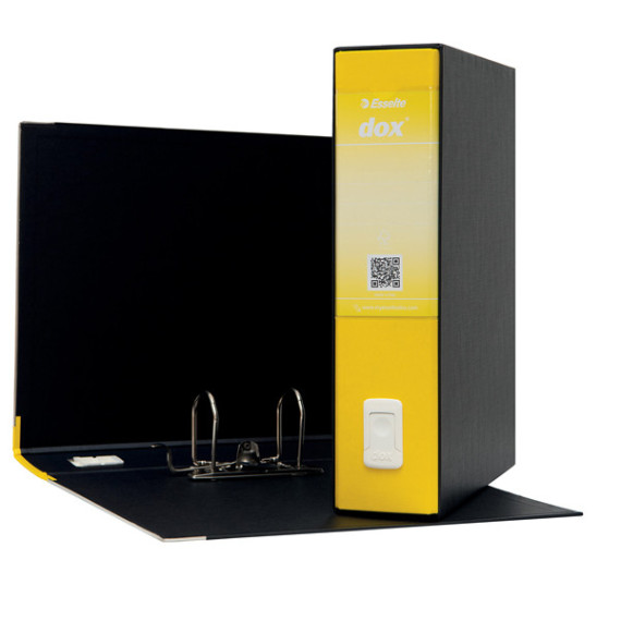 Registratore Dox® 2 dotato di linguella per l'estrazione a scomparsa 3 volte più resistente, caratterizzata da un design con presa più ergonomica, più agevole e arrotondata (l'area rientrante suggerisce il gesto per estrarre correttamente).Struttura in cartone rivestito con carta goffrata antimpronta e rifinito con paralati metallici alla base della plancia. Custodia in fibrone rivestito con carta nera goffrata trattata antimpronta, interno nero e parabordi verniciati. Meccanismo a leva in acciaio nichelato con pressino. Dorso in materiale plastico colorato e portaetichette trasparente con etichetta reversibile.Ogni dox possiede al suo interno un volantino con il codice QR da applicare sull'etichetta e 3 semplici indicazioni per scaricare la app dedicata su App Store e Google Play. Dox infatti si trasforma in registratore intelligente grazie a mydox app, la soluzione facile e immediata per archiviare e reperire documenti (tutte le informazioni sono disponibili sul sito www.myesseltedox.com).Formato protocollo (LxH) 23x34 cm. Dorso 8 cm. Colore giallo. Dimensioni 85x352x288 mm.